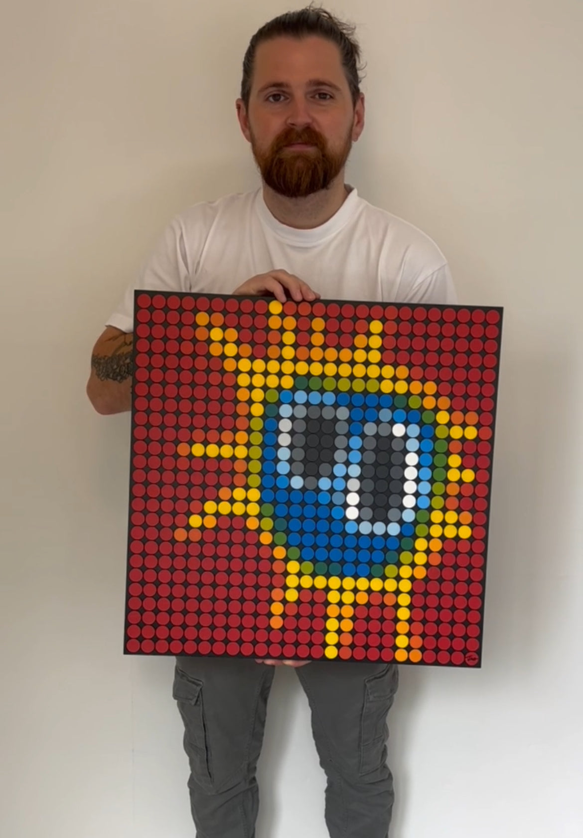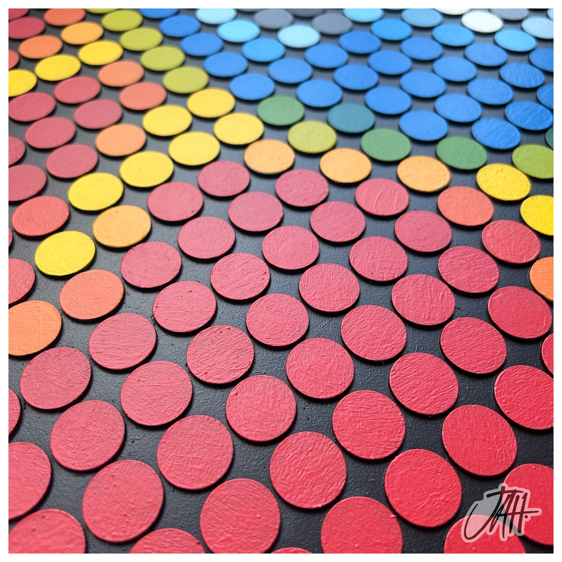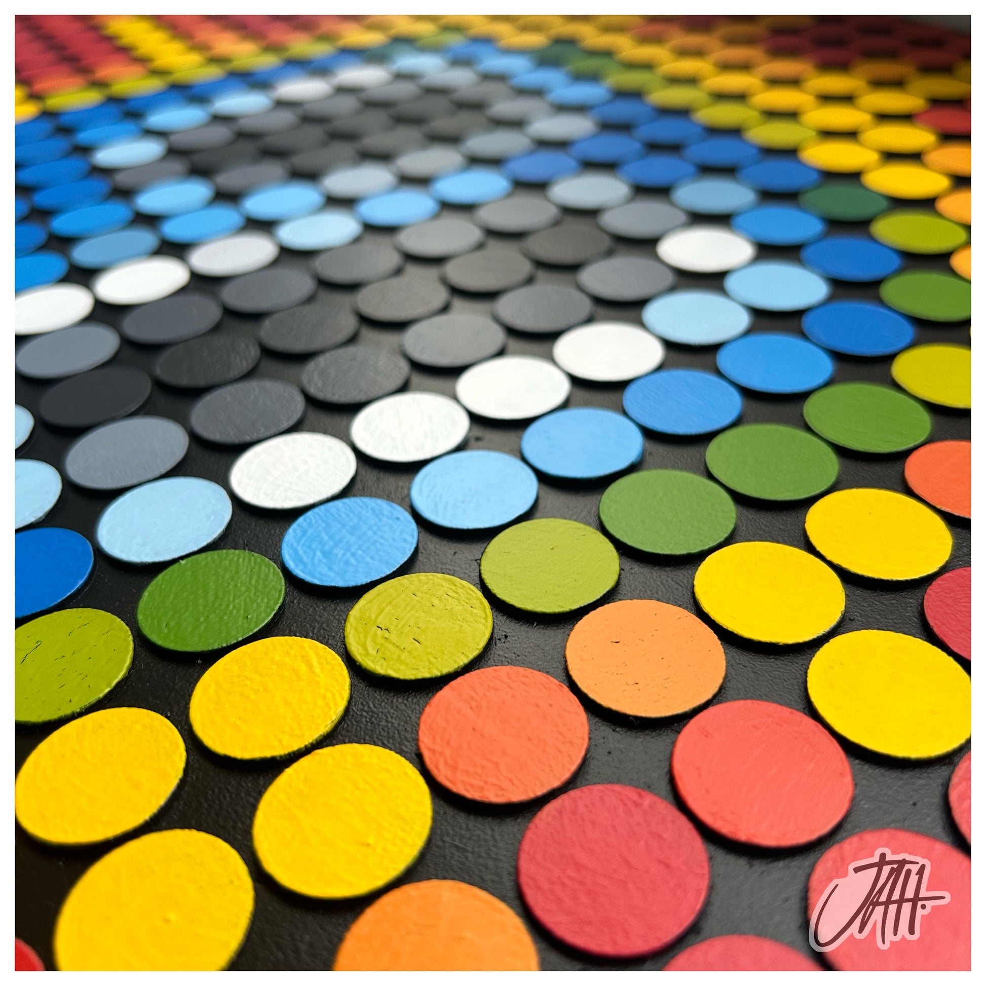 Using 625 wooden discs mind numbingly stuck onto a thick MDF board, I have taken something truly iconic in it’s symbolism and recognisability and (I reckon) made it better.