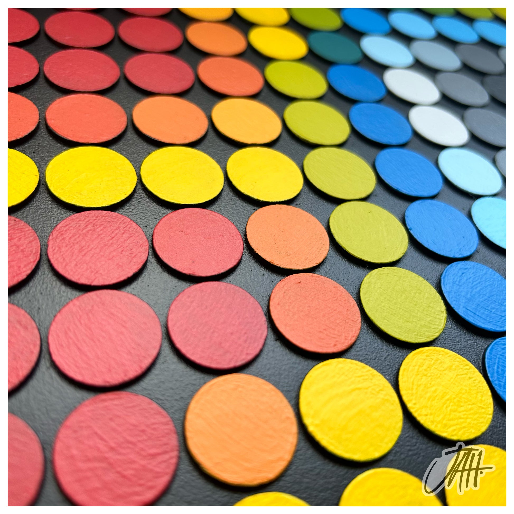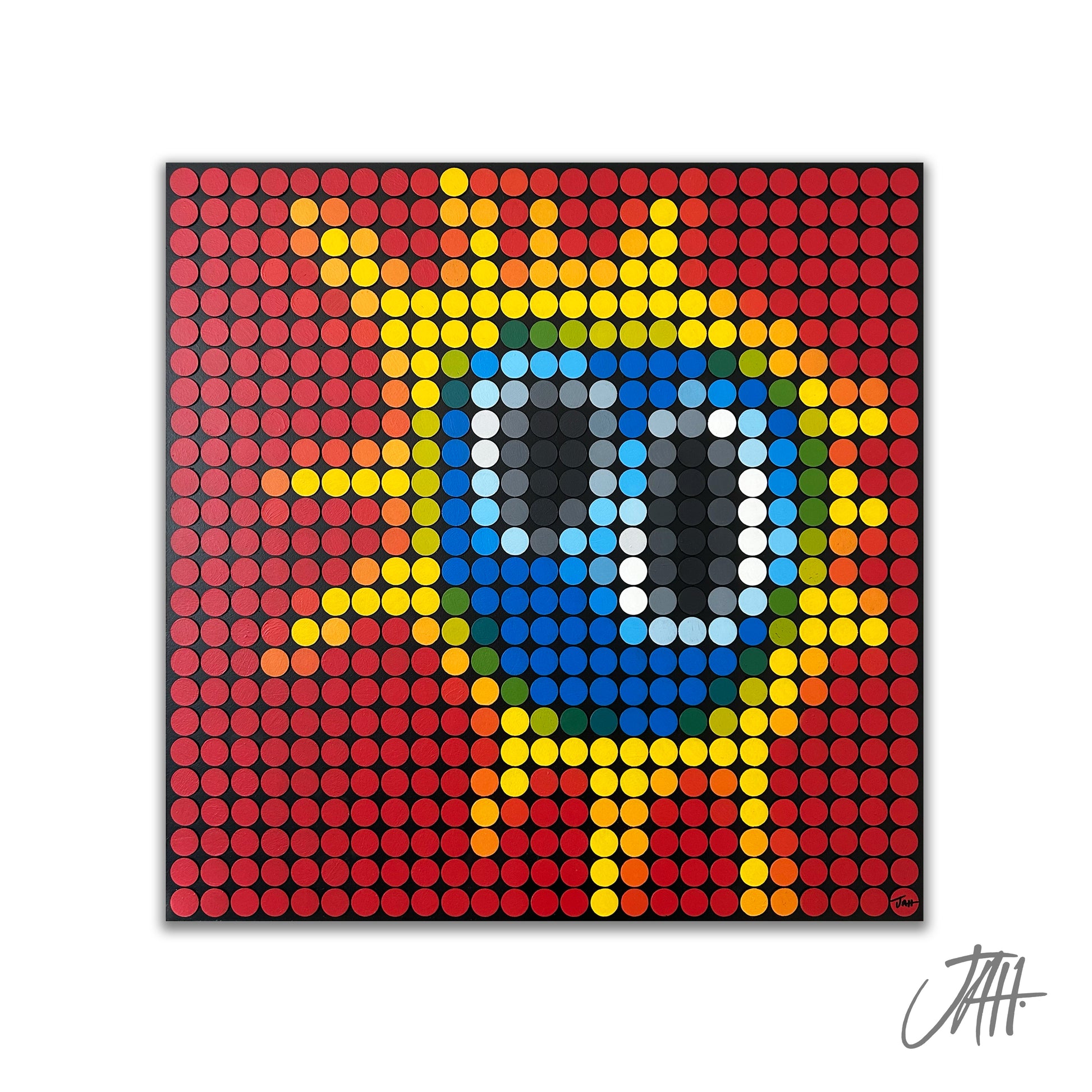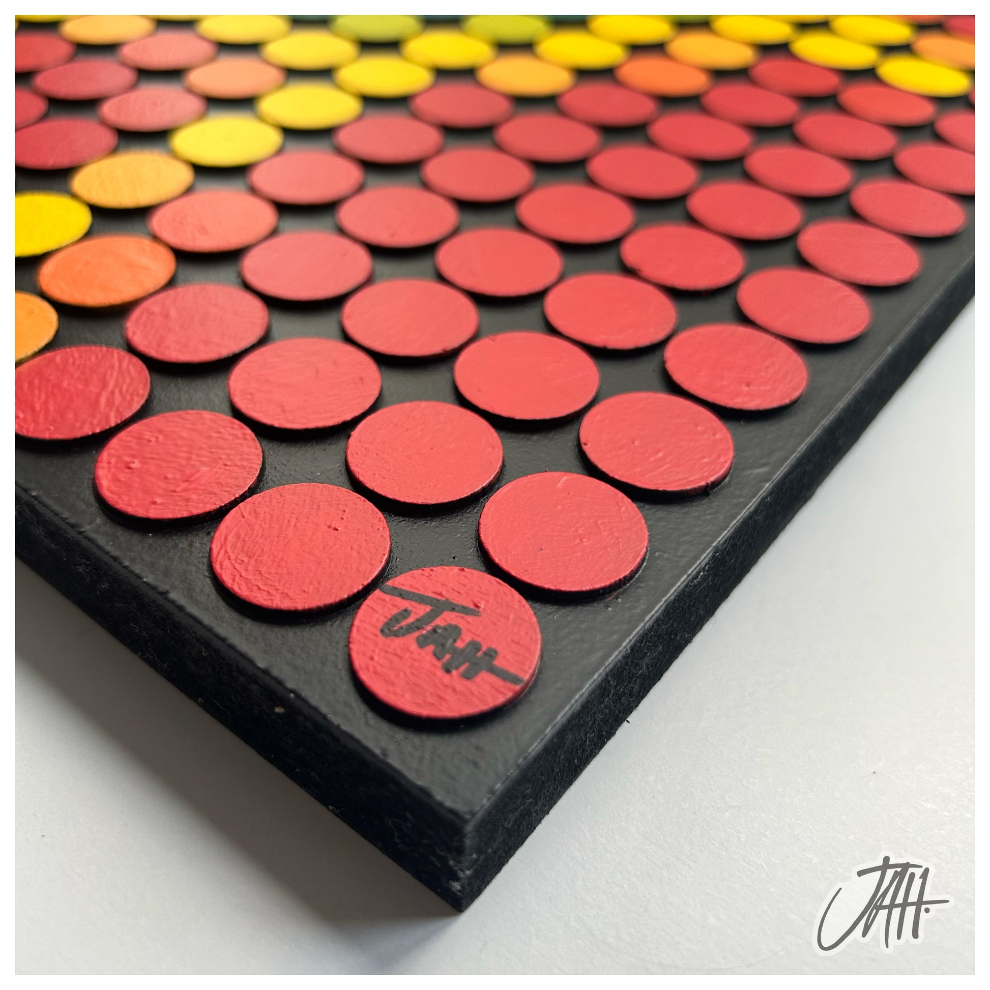 Using 625 wooden discs mind numbingly stuck onto a thick MDF board, I have taken something truly iconic in it’s symbolism and recognisability and (I reckon) made it better.